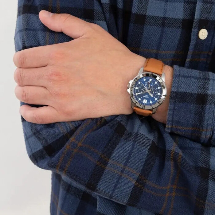 | Минусы: | Жаль что рант не поворотный, хотя выполнен с намёком на это (после покупки пытался его безуспешно повернуть - очень похож на поворотный); не помешала бы светодиодная подсветка или часовые метки со светоотражающим напылением, а так только на стрелках да и то слабовато; самая слабая степень влагозащищённости (WR) - только для того, чтобы аккуратно помыть руки под краном или пройтись под не очень сильным дождём, а для приёма душа или плавания уже не подойдёт. |