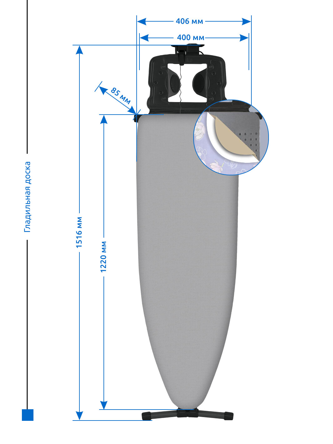 | Минусы: | Цепляет иногда кромка подставки утюга, если в притык проходишь мимо доски |