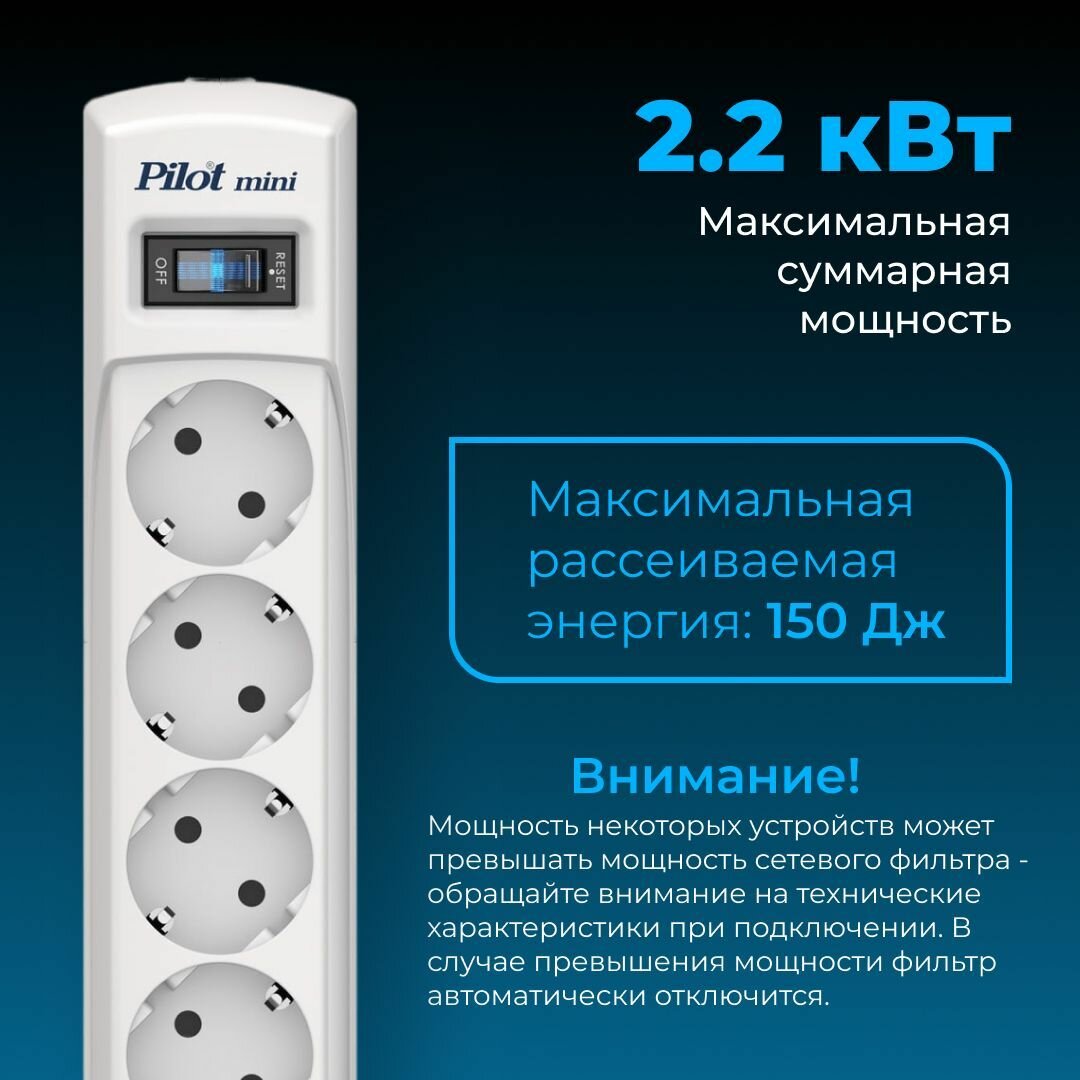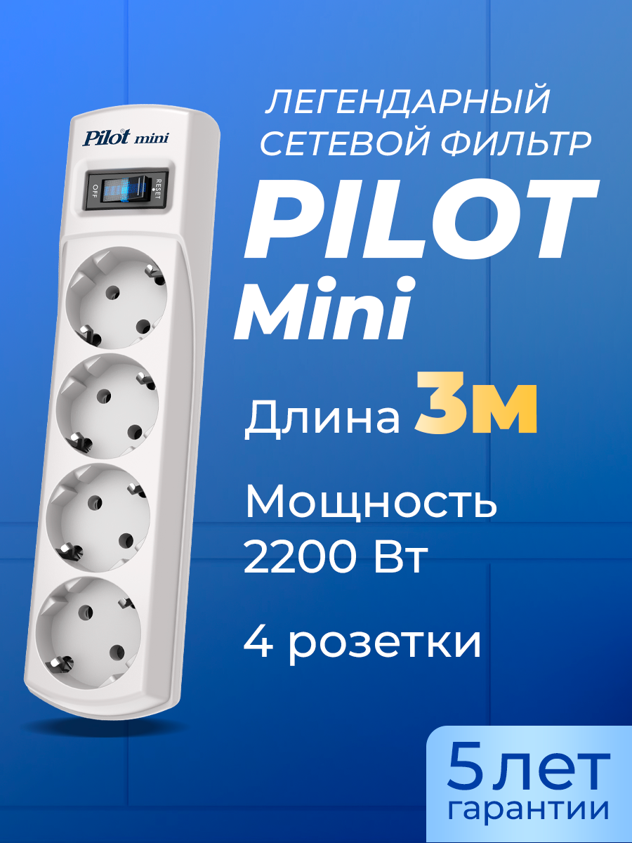 Сетевой фильтр Pilot mini 3 м 4 розетки