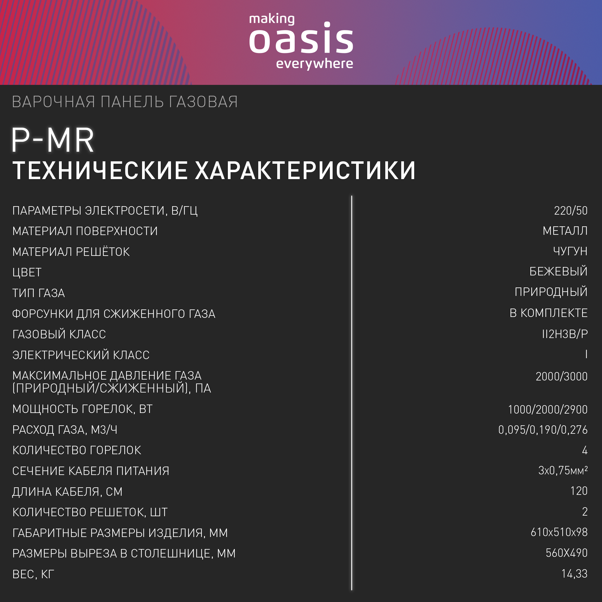 Варочная поверхность Oasis P-MR (F)
