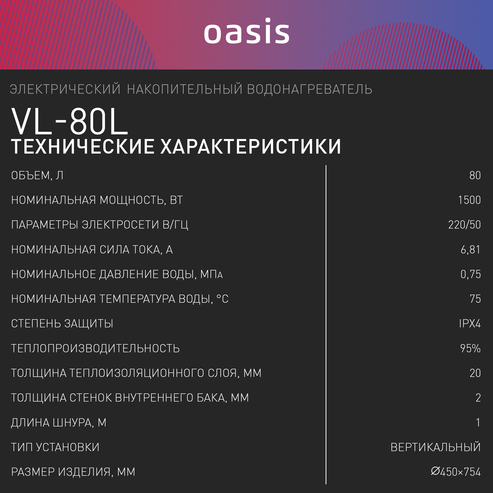 Водонагреватель OASIS VL-80L