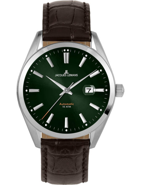 Наручные часы Jacques Lemans 1-1846C, мужские механические с автоподзаводом классические часы Жак Леман с датой на кожаном ремне