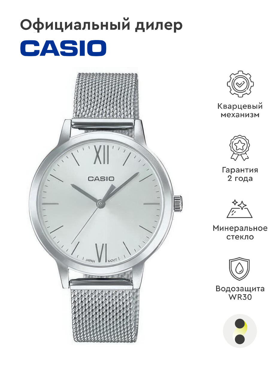 LTP-E157M-7A Casio наручные часы кварцевые WR30 (3 атм) женские серебряный минеральное стекло