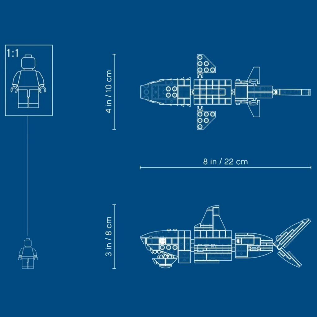 Конструктор оправдал все ожидания) В комплекте не только акула но и вся массовка) Сокровища и тп) |