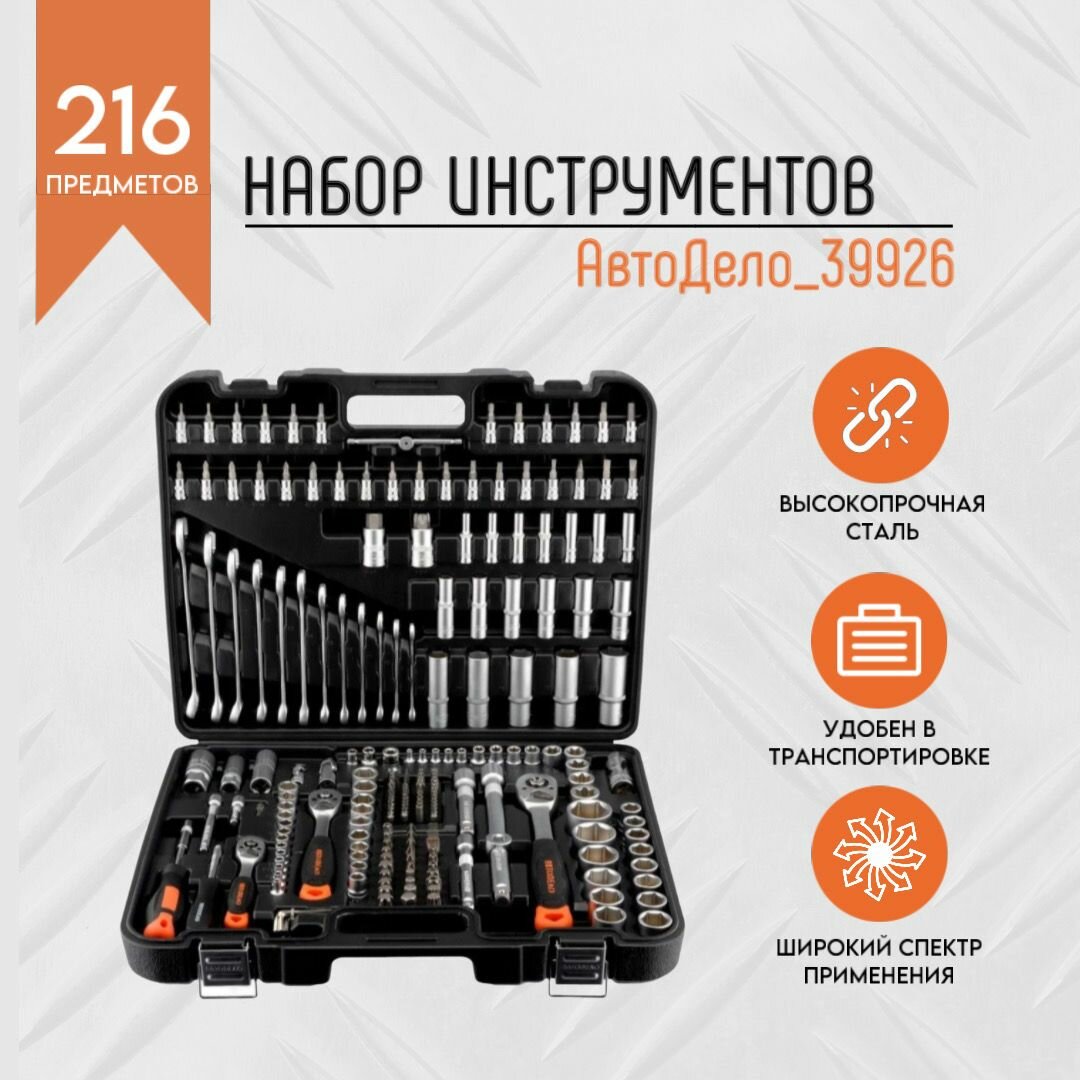 Универсальный АвтоDело 39926, 216 предм., черный/оранжевый, 1 уп.
