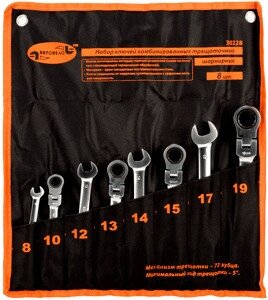 Набор ключей комбинированных трещоточных шарнирных 8 пр. 8-19 мм сумка АвтоДело