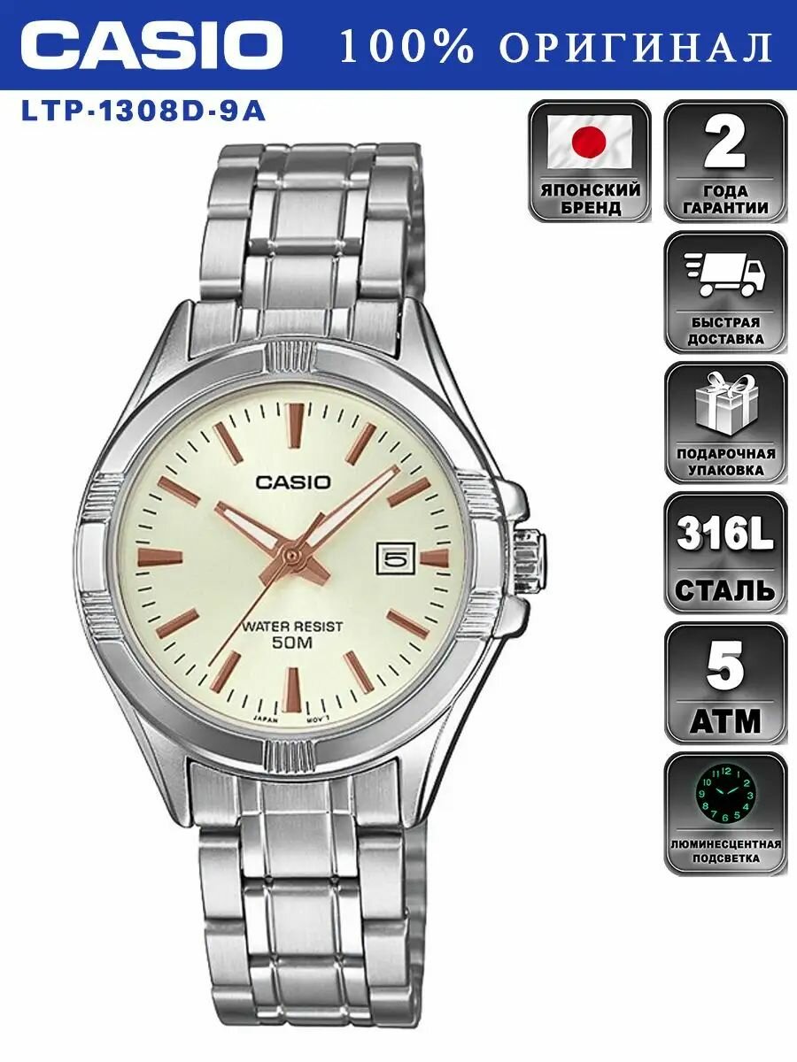 Ниже Вы можете прочитать отзывы на Женские наручные часы Casio LTP-1308D-9A на металлическом браслете с индикацией числа, ознакомится с подробными характеристиками, посмотреть интересные обзоры и фотографии на Женские наручные часы Casio LTP-1308D-9A на металлическом браслете с индикацией числа.