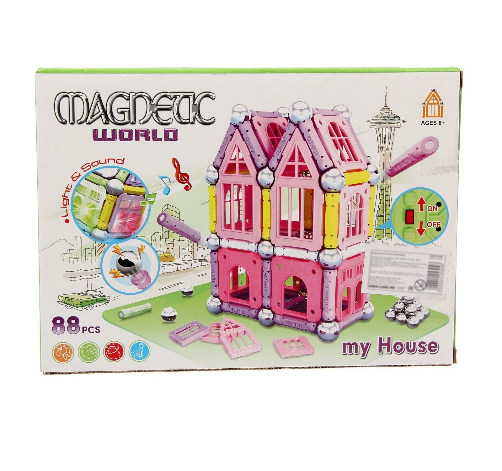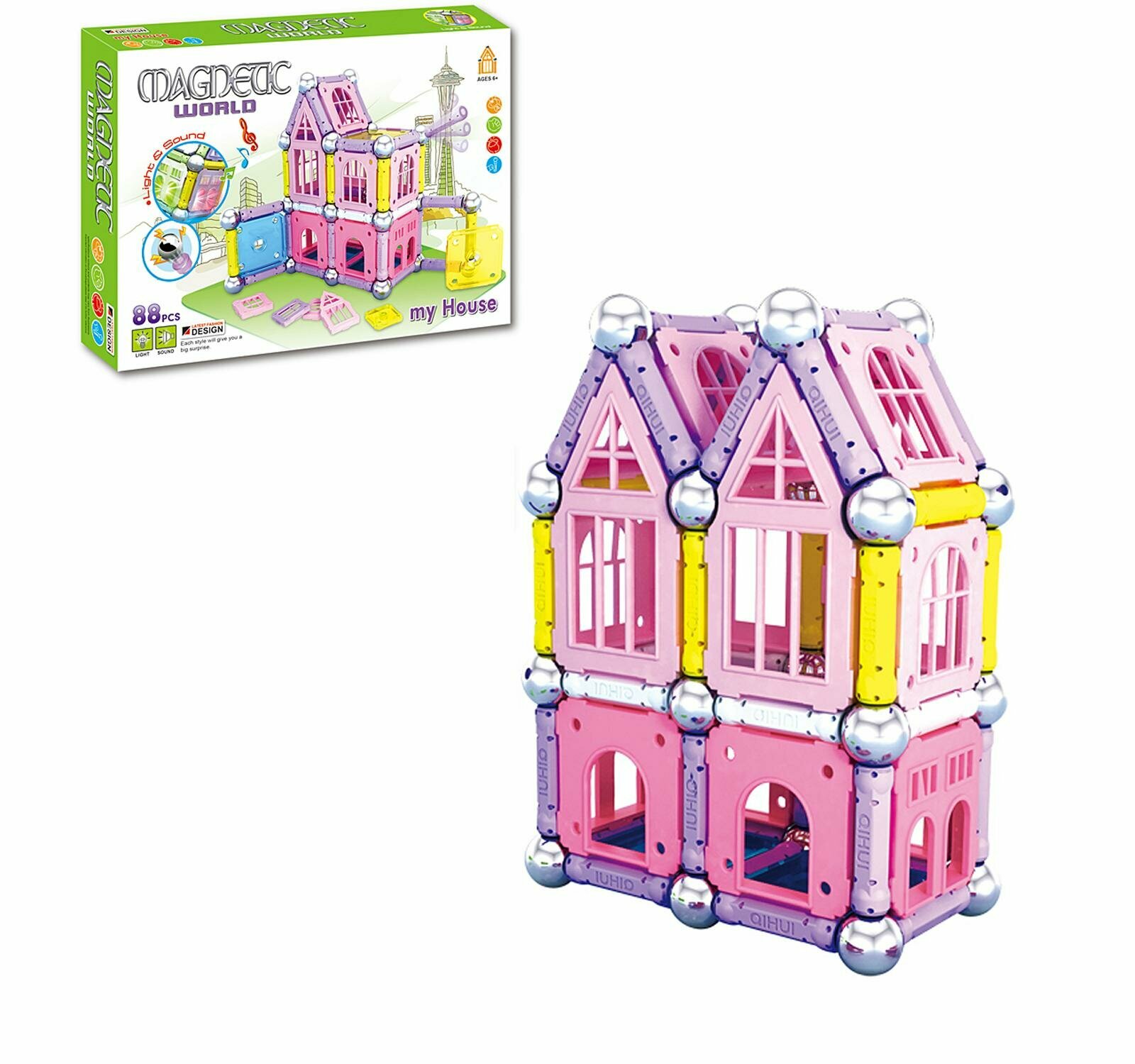 Конструктор магнитный «Дом», световые и звуковые эффекты, 88 деталей
