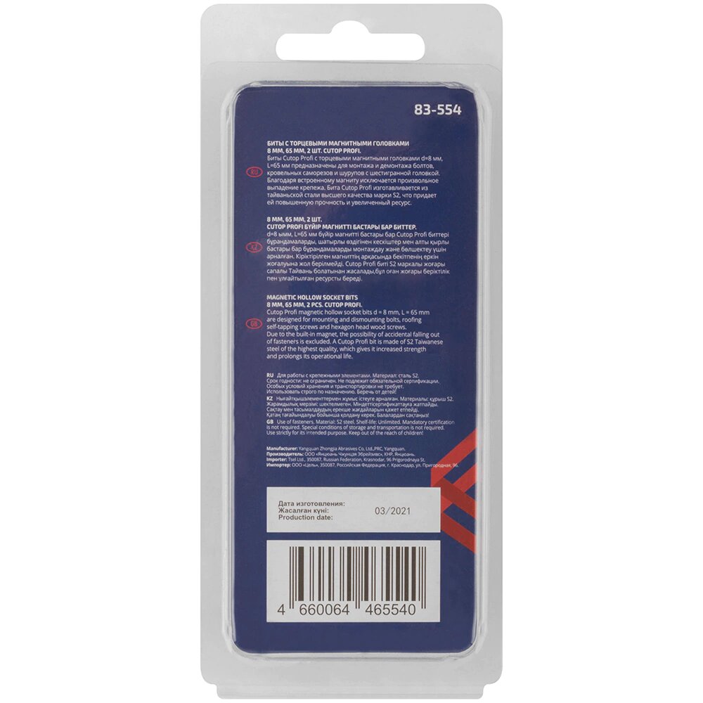 Набор бит с торцевыми магнитными головками 8 мм, 2 шт., CUTOP Profi, 65 мм 83-554