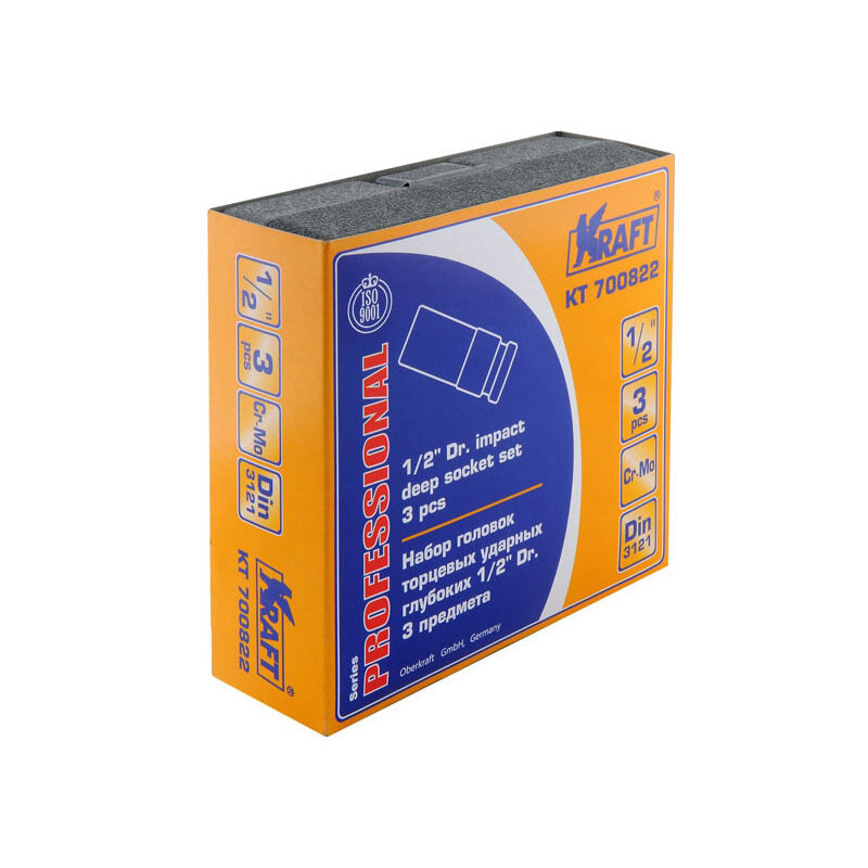 Набор головок торцевых 1/2Dr глубоких ударных 3 предмета (tool) KRAFT / арт. KT700822 - (1 шт)