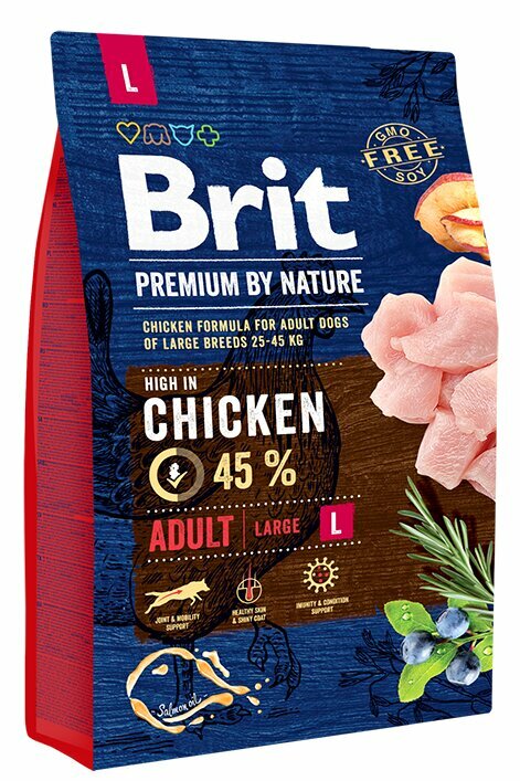 Сухой корм для собак Brit Premium Adult Large and Giant L+XL, курица 3 кг (для крупных пород)