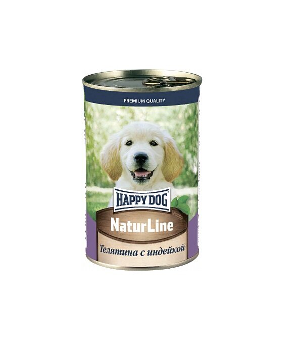 Консервы для собак Happy Dog NatureLine (Телятина с индейкой), 410 гр. по 6шт.