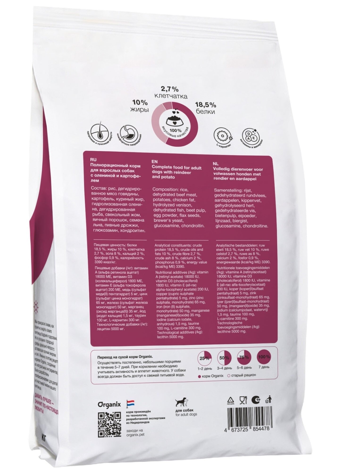 Organix полнорационный сухой корм для взрослых собак всех пород с олениной и картофелем, 2,5 кг