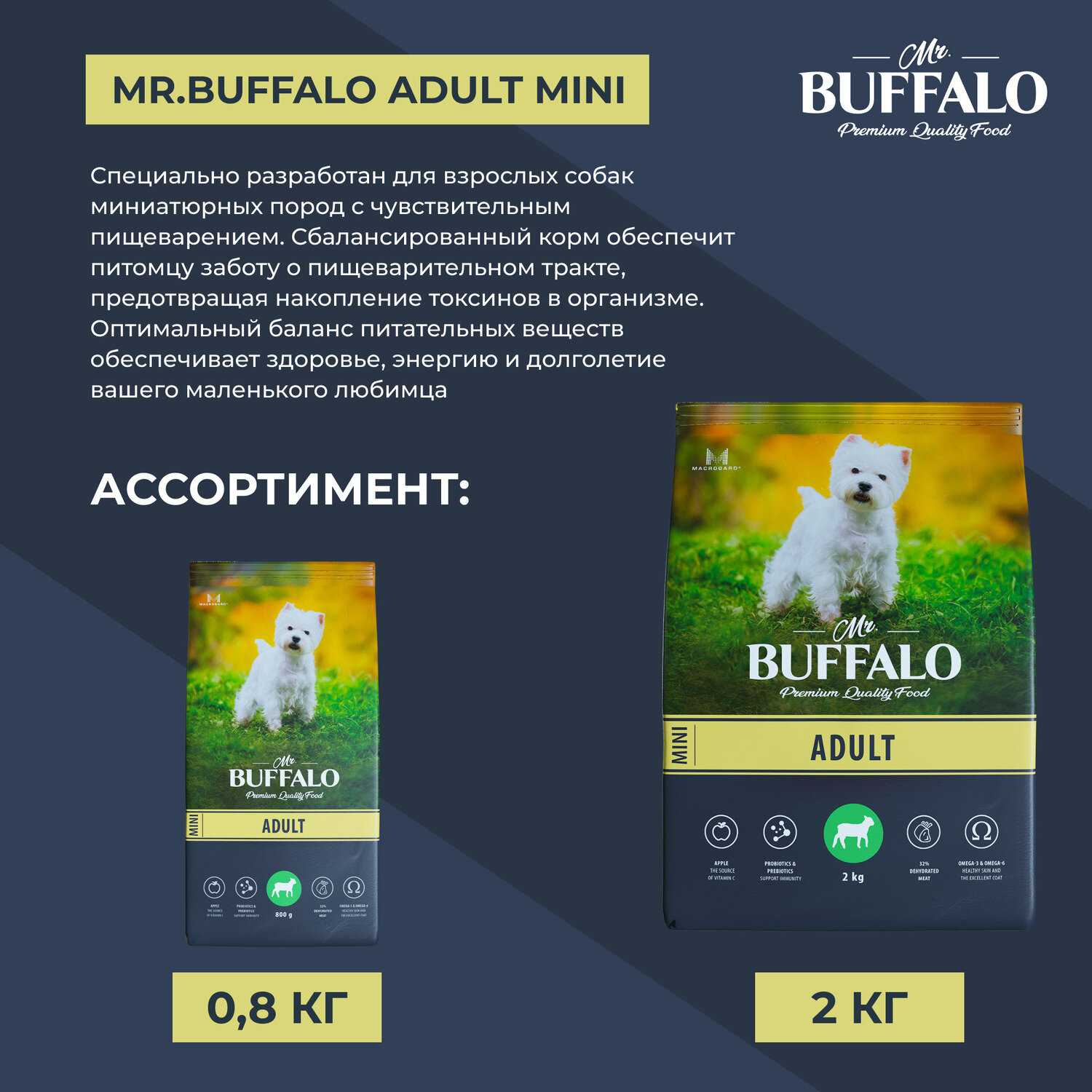 Купить Сухой корм для миниатюрных пород Mr.Buffalo Adult Mini с чувствительным пищеварением с ягненком 2 кг.