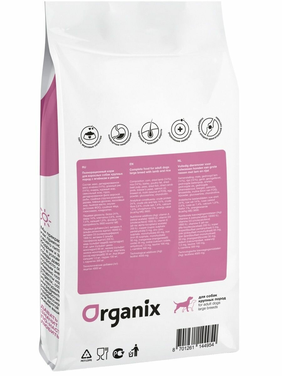 Купить Organix полнорационный сухой корм для взрослых собак крупных пород с ягненком и цельным рисом 12 кг
