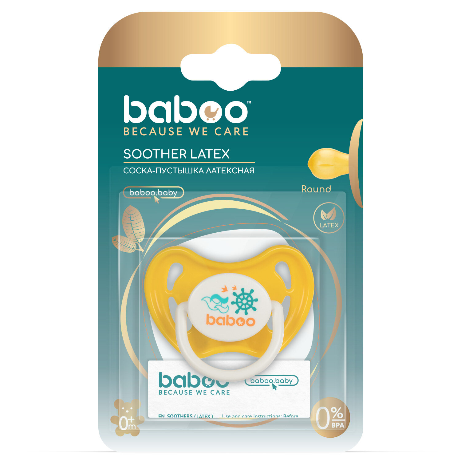 Пустышка латексная анатомическая круглая ночная Baboo Marine, 0+ мес., желтый
