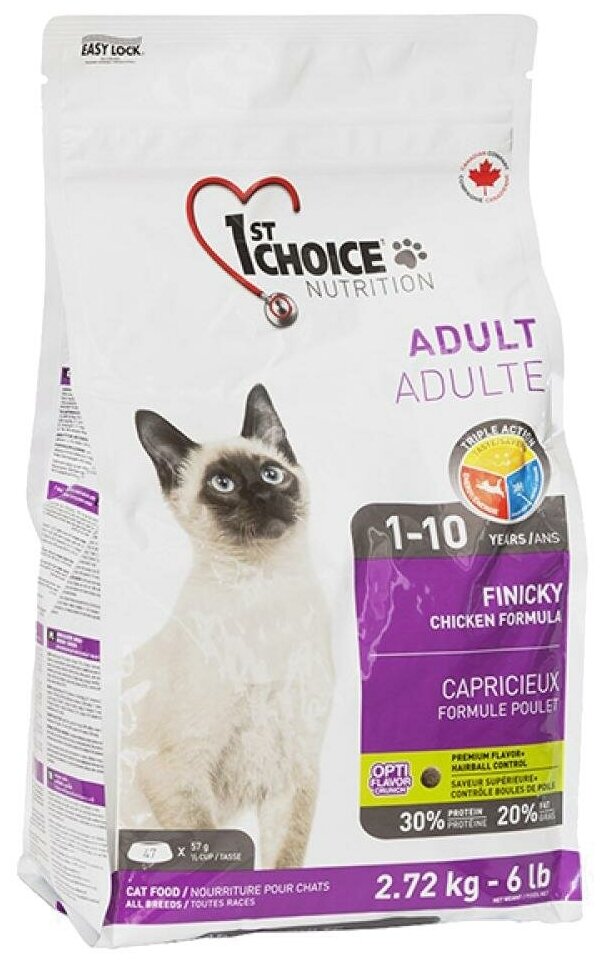 1ST CHOICE FINICKY сухой корм для взрослых привередливых к еде кошек из цыпленка, 2,7 кг