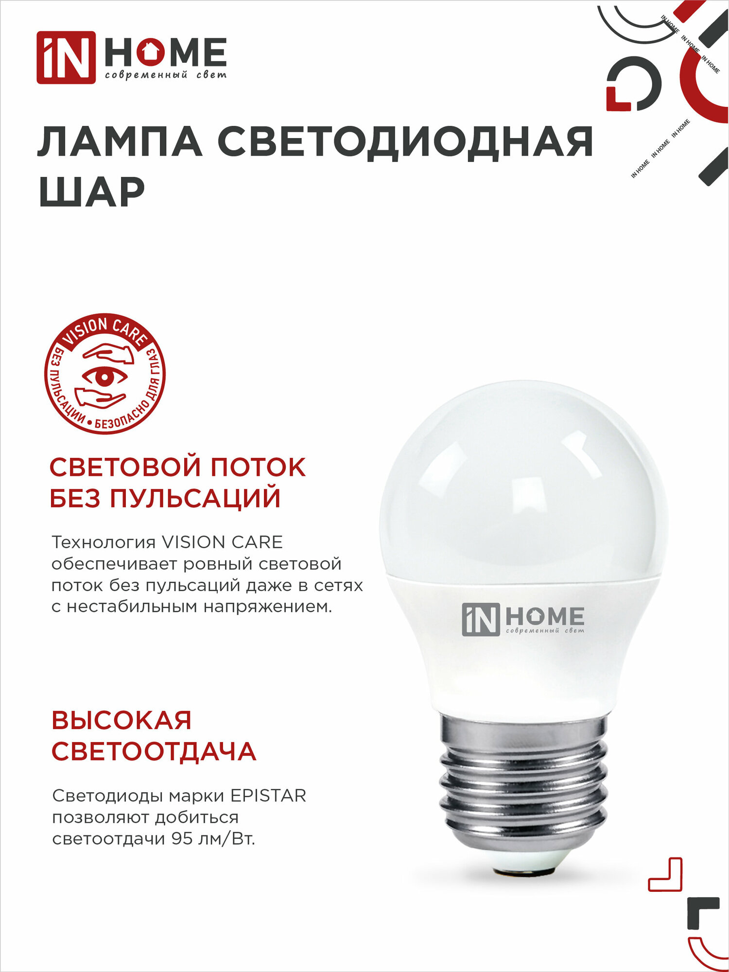 IN HOME Лампа светодиодная LED-ШАР-VC 4PACK 8Вт 230В Е27 4000К 760Лм (4шт./1упак.) (арт. 4690612047867)