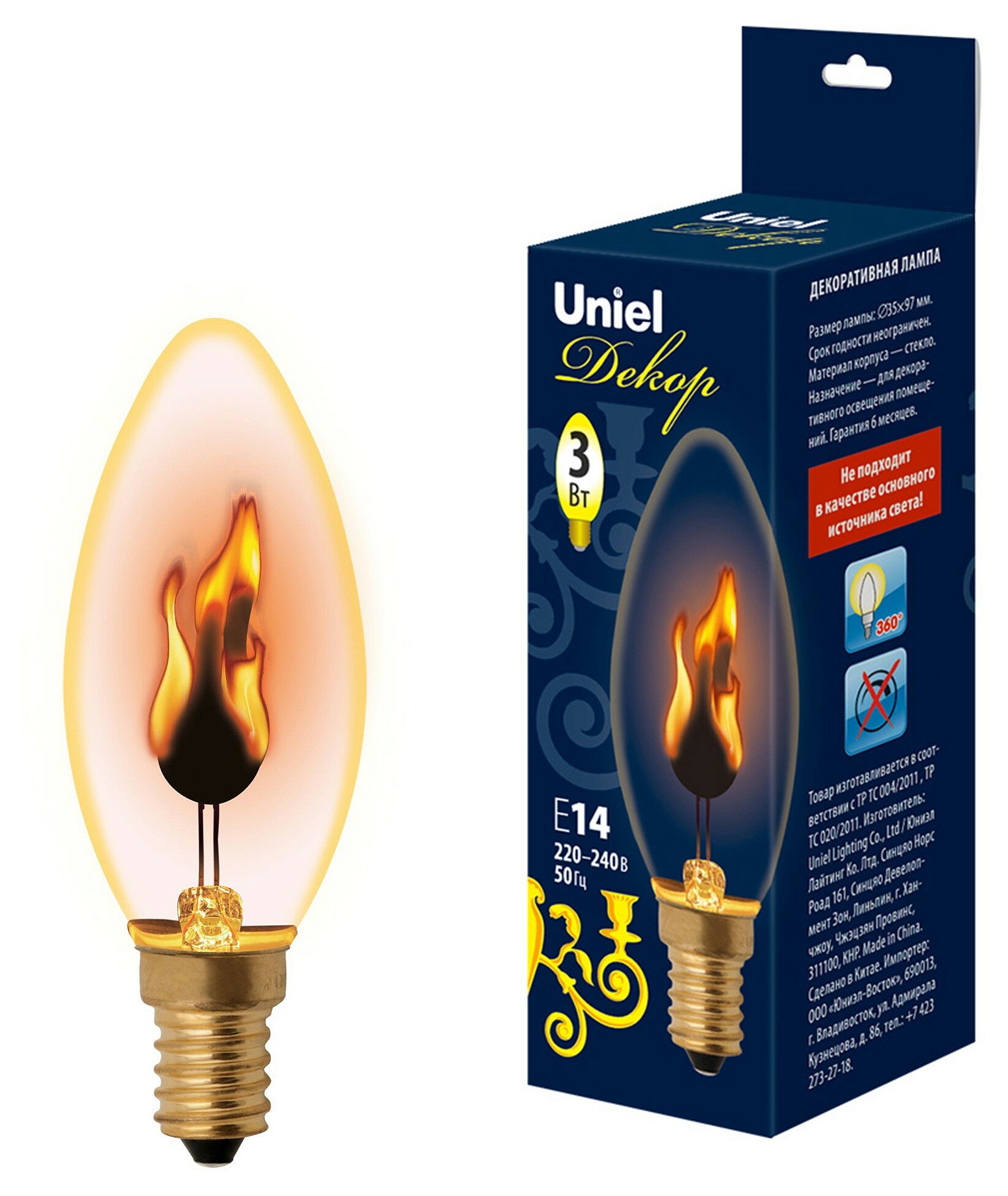 Лампа декоративная "эффект пламени" 3Вт 220В свеча Е14 UNIEL UL-00002981