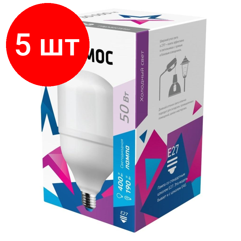 Купить Комплект 5 штук, Лампа светодиодная Космос 50W E27 6500k хол.бел. HW