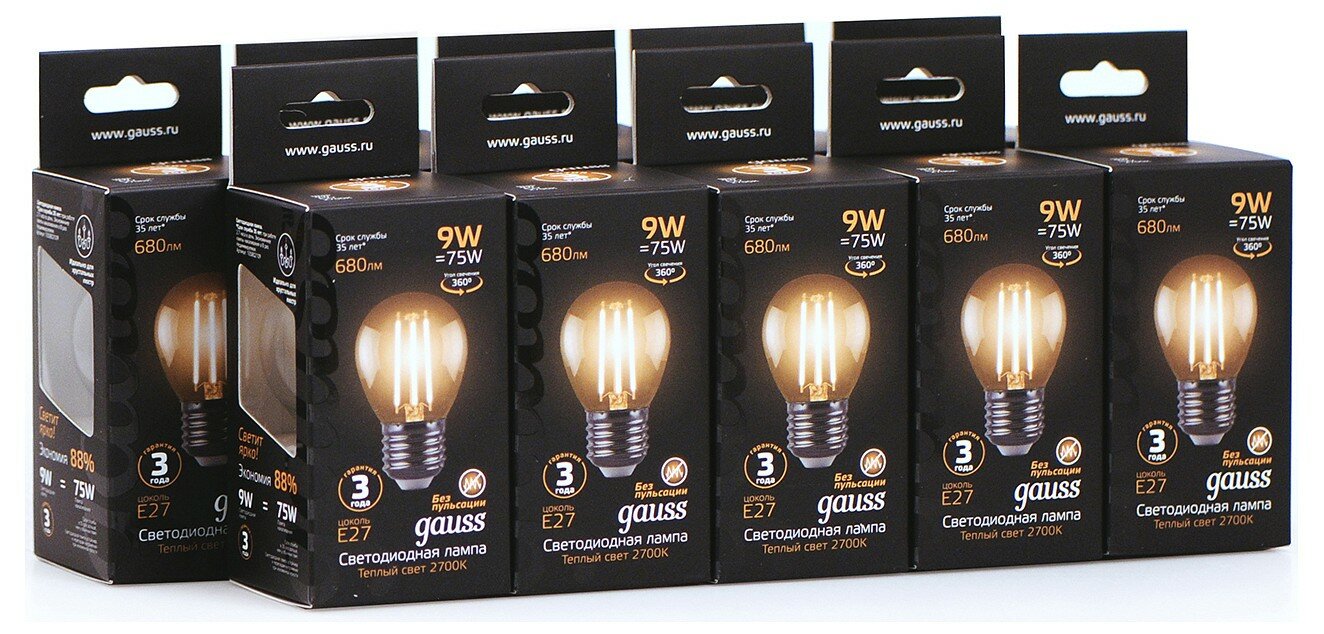Ниже Вы можете прочитать отзывы на Лампа Gauss LED Filament Шар 9W E27 2700K, ознакомится с подробными характеристиками, посмотреть интересные обзоры и фотографии на Лампа Gauss LED Filament Шар 9W E27 2700K.