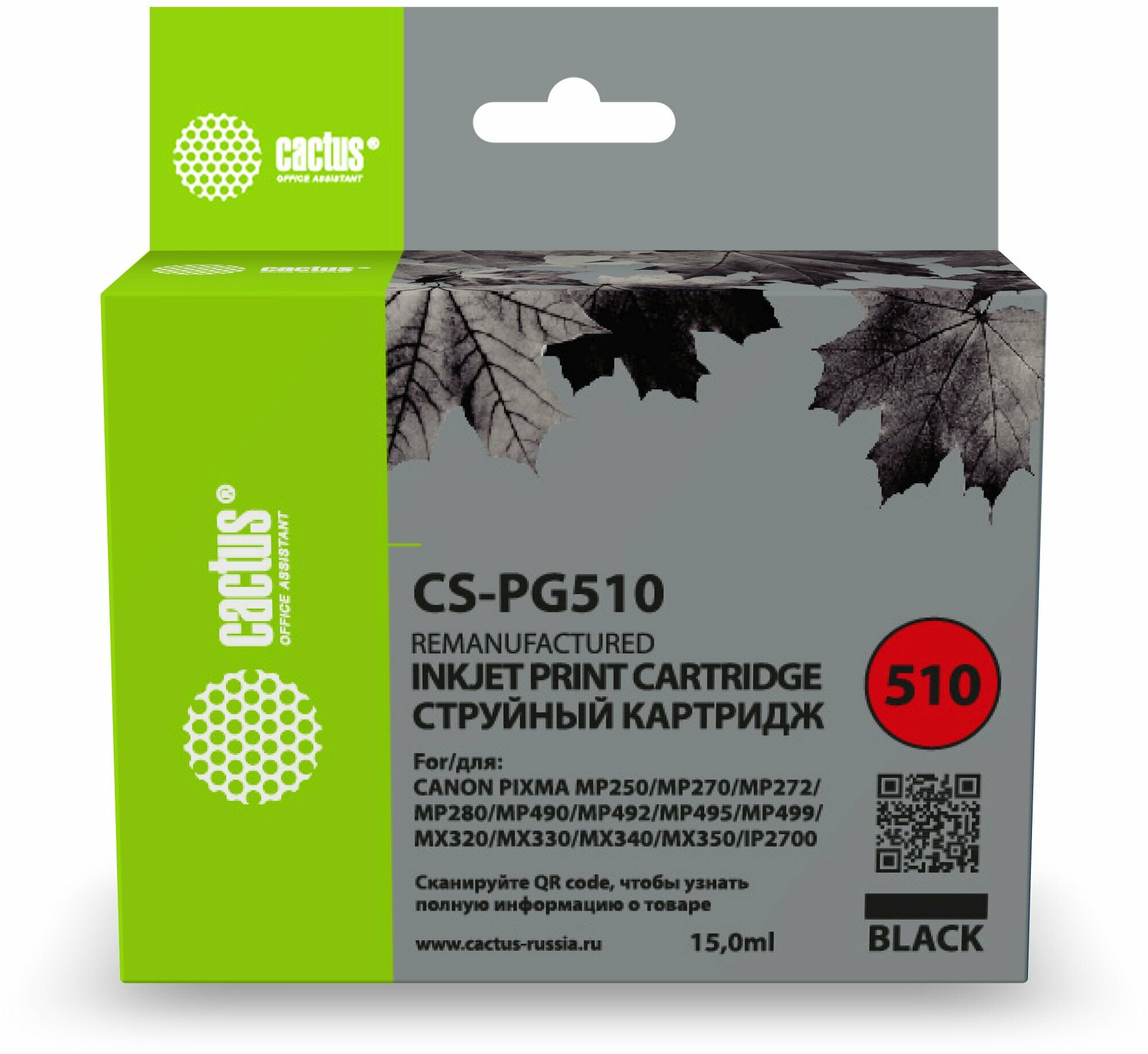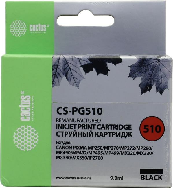 Cactus PG-510 Картридж CS-PG510 для PIXMA MP240 MP250 MP260 MP270 MP480 MP490 MP492 MX320 MX330 черный, 9 мл.