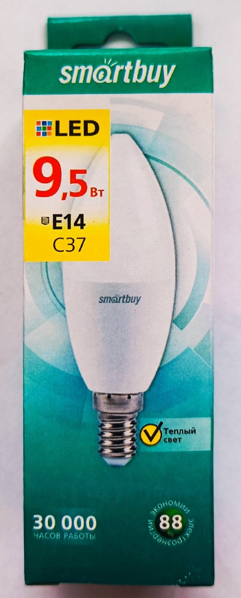 Лампа светодиодная Smartbuy, C37, Е14, 9.5 Вт, 3000 К, теплый белый свет