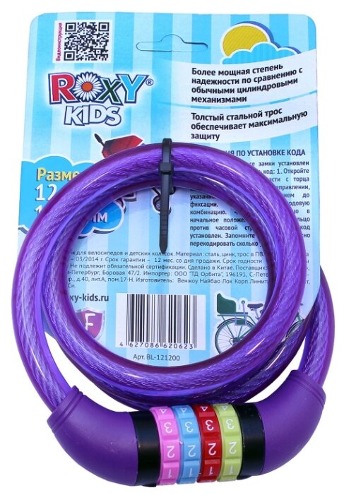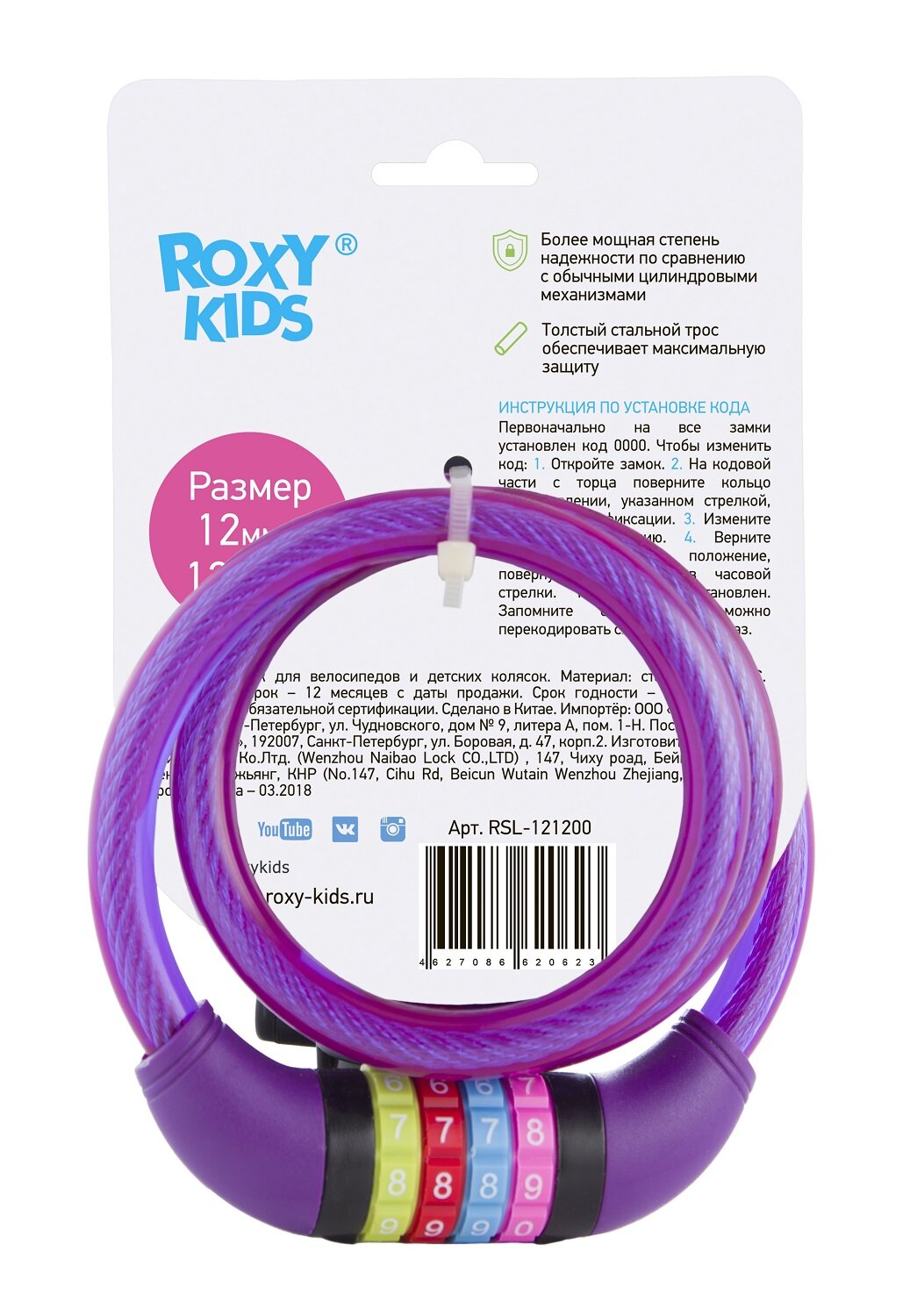 Замок кодовый для коляски, самоката, велосипеда от ROXY-KIDS 120 см, цвет фиолетовый