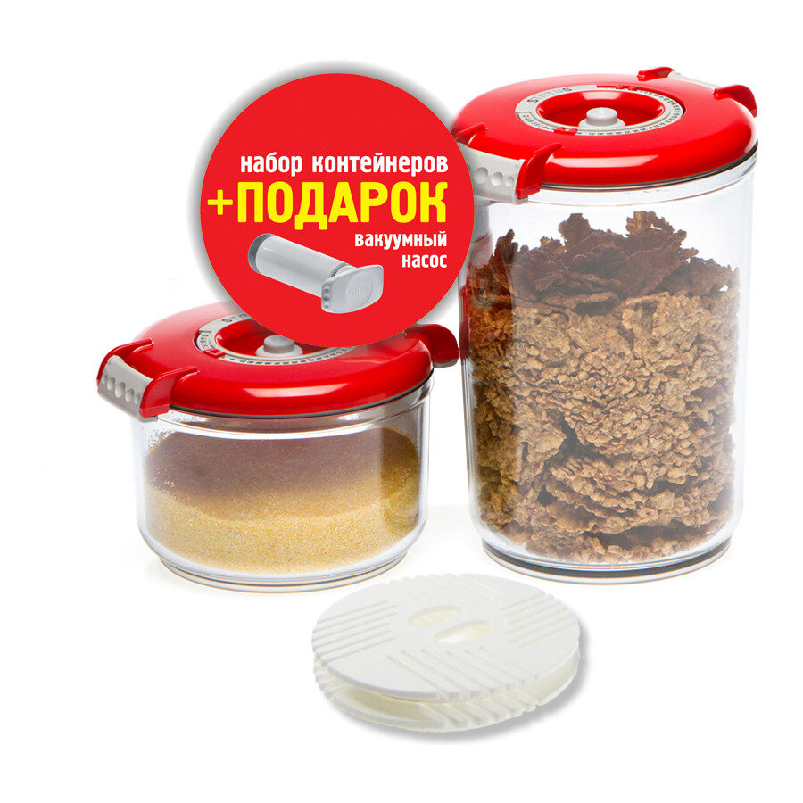 Набор контейнеров круглых для вакуумных упаковщиков STATUS VAC-RD-Round Red (0,75л, 1,5л, ручной нас