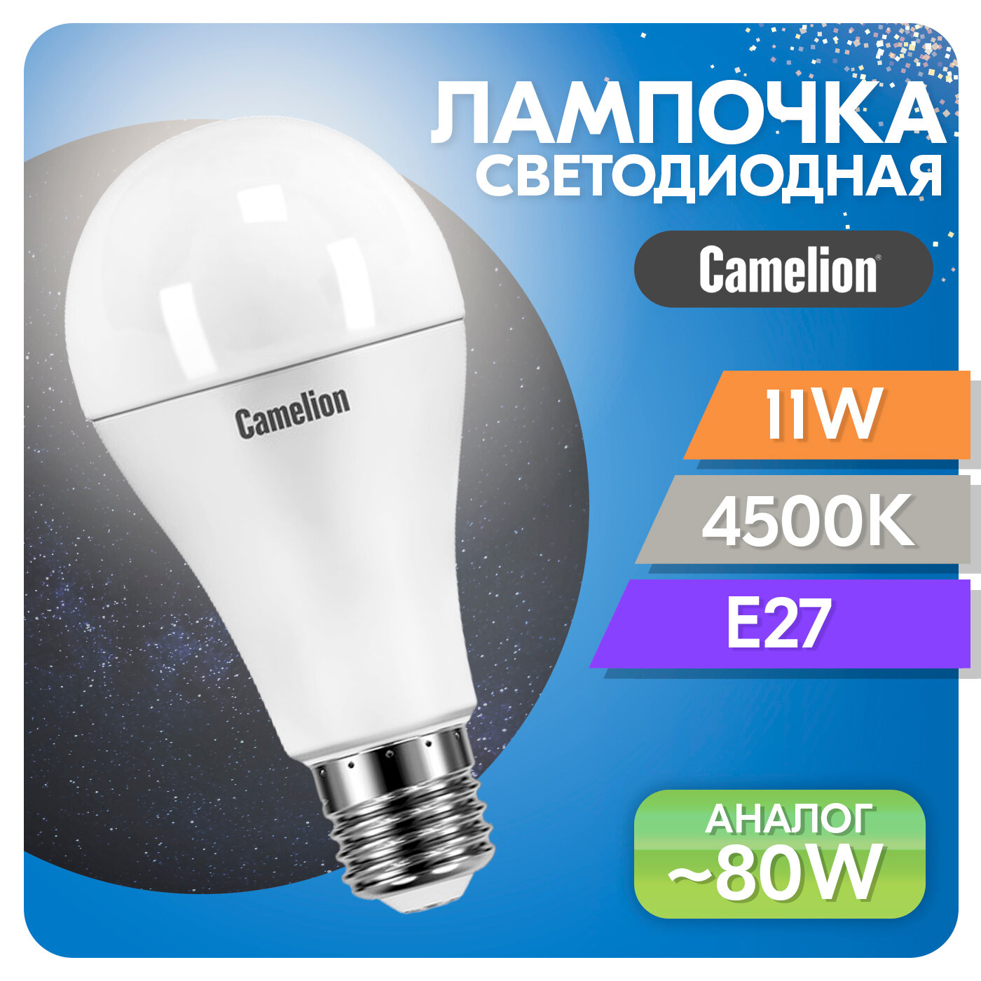 Лампочка Camelion E27 A60 11W 220V 4500K 880Lm LED11-A60/845/E27