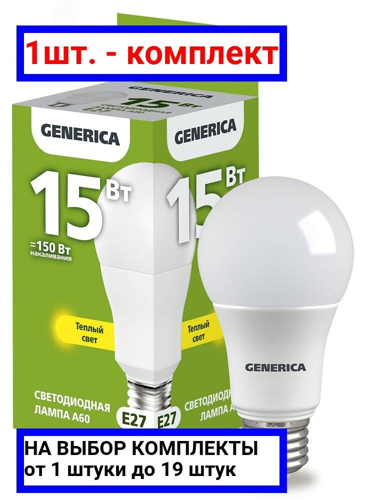 Лампа светодиодная Generica A60-15, E27, A60, 15 Вт, 3000 К