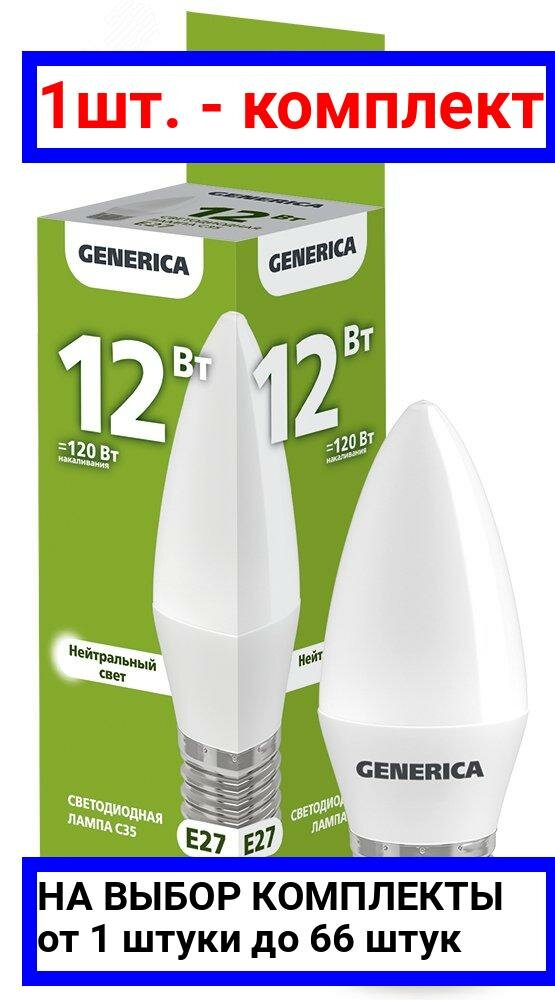 GENERICA Лампа светодиодная GENERICA C35, 12 Вт, свеча, 4000 К, E27, 230 В, LL-C35-12-230-40-E27-G