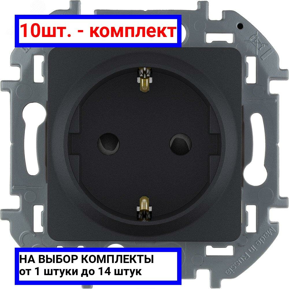 Купить 10шт. - Розетка 2К+З со шторками немецкий стандарт 16 А 250 В~ INSPIRIA антрацит / Legrand; арт. 673733; оригинал / - комплект 10шт