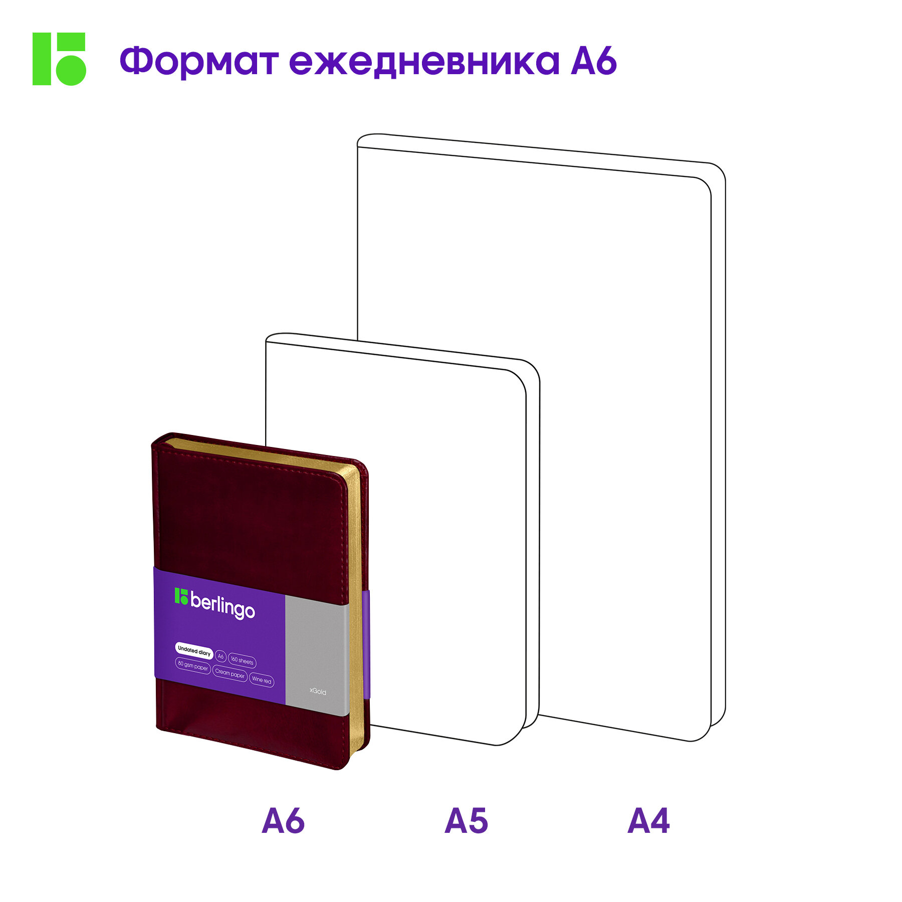 Ежедневник недатир. A6, 160л., кожзам, Berlingo "xGold", зол. срез, фиолетовый (арт. 276435)