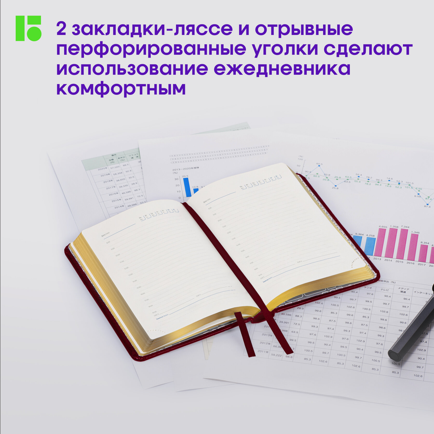 | Особенности | закругленные углы / ляссе / перфорация уголков / прошивка по периметру обложки / справочная информация |