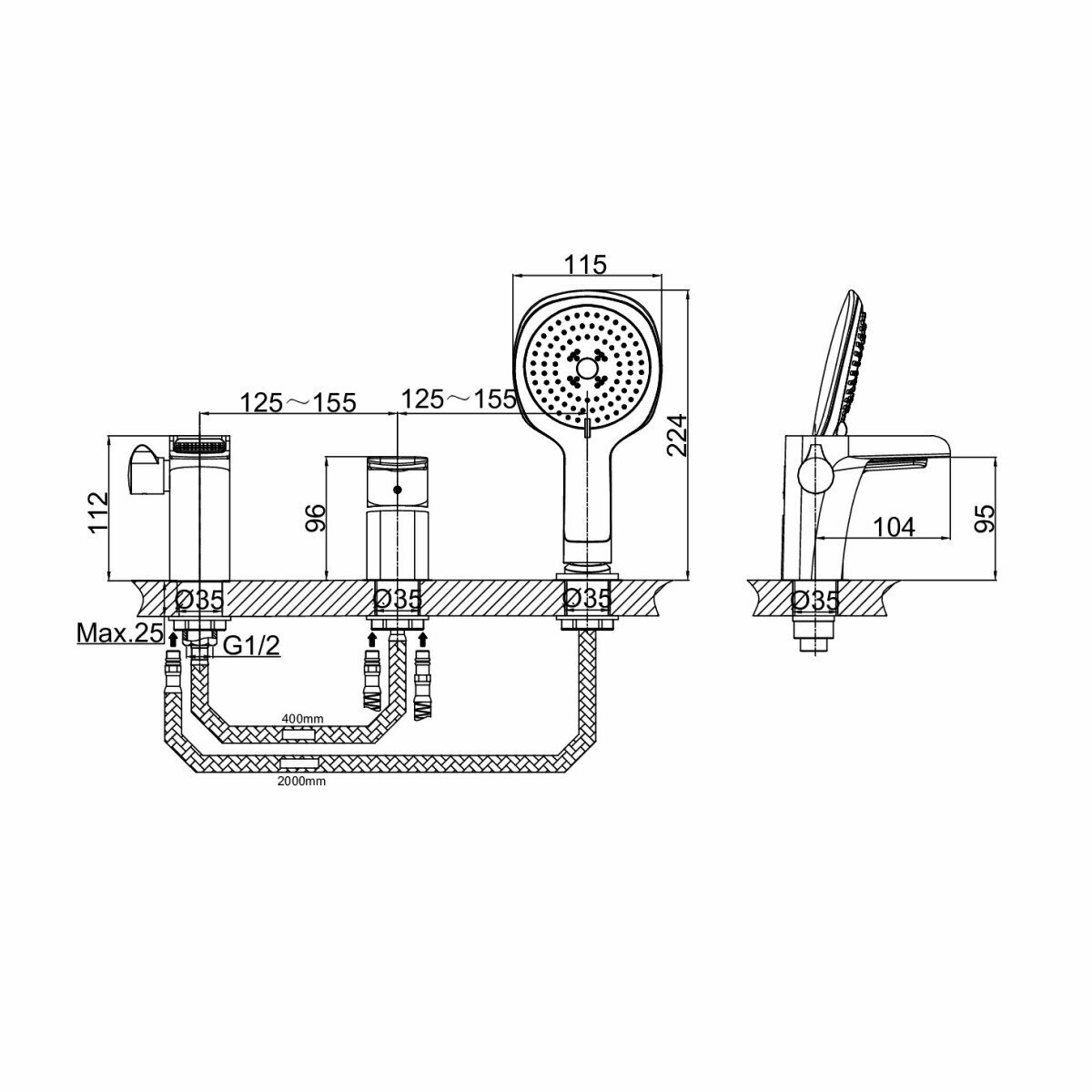 Смеситель D&K для душа с гигиеническим душем встраиваемый Bayern.Liszt (DA1514505)