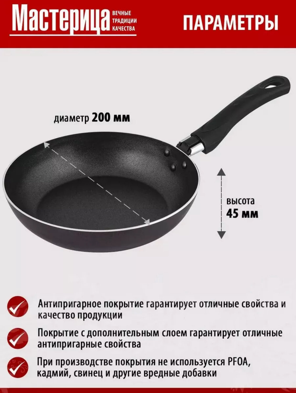 Сковорода ТМ Мастерица 46682214 антипригарное покрытие 22см