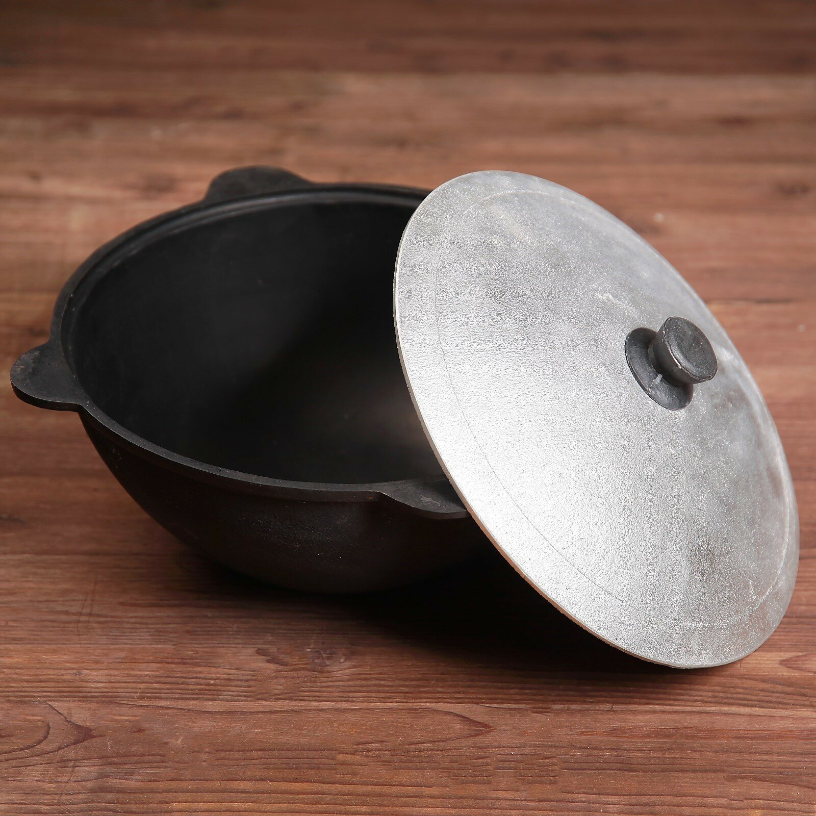 Чугунный казан с плоским дном и крышкой (объем 8 литров) интересное: