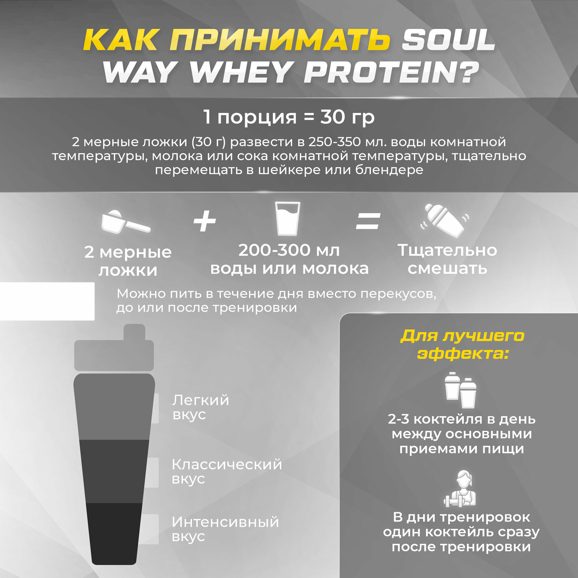 СохранитьПротеин сывороточный Soul Way, протеин банановый / 900 гр 30 порций интересное: