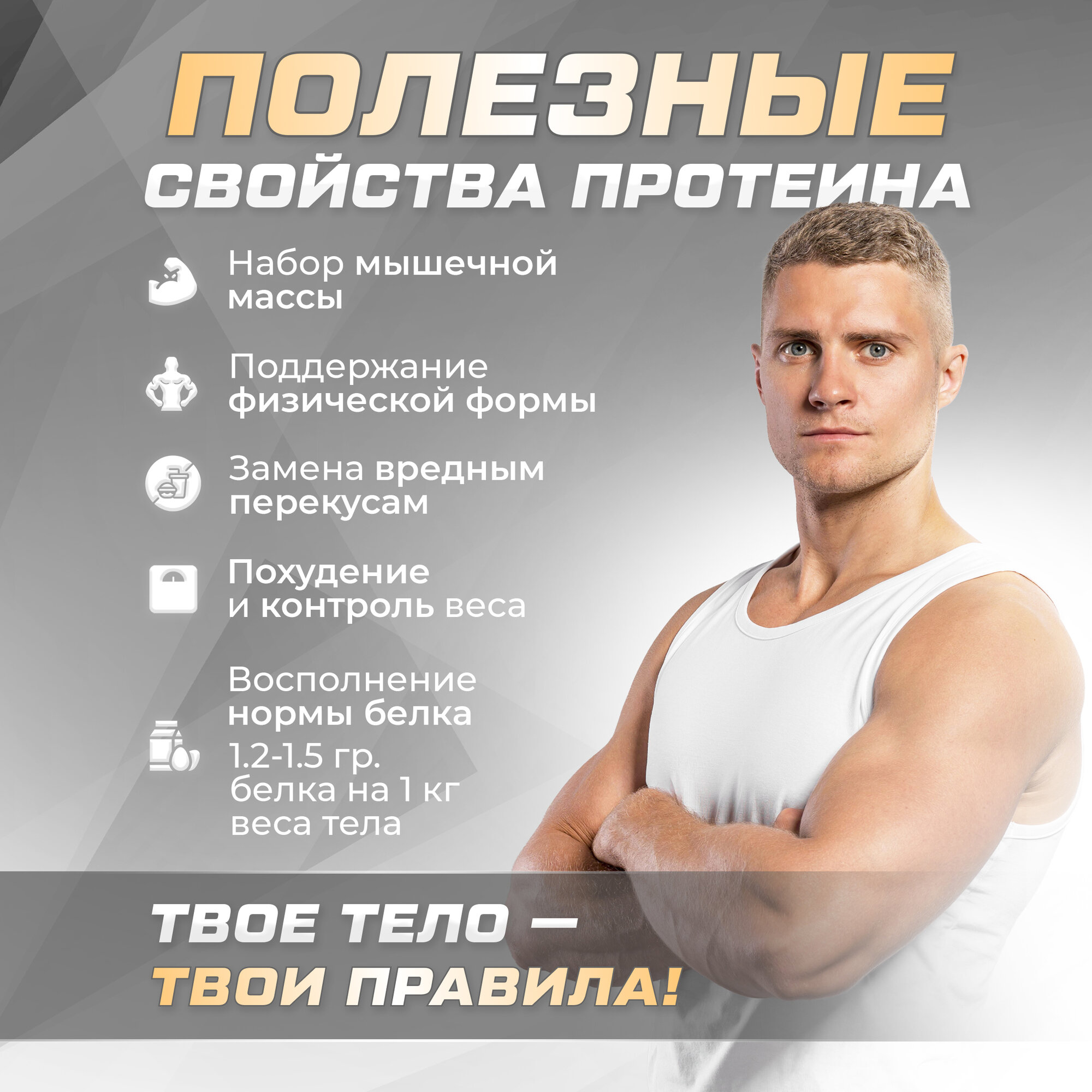 протеин клубничный 900 гр, сывороточный для набора мышечной массы, whey
