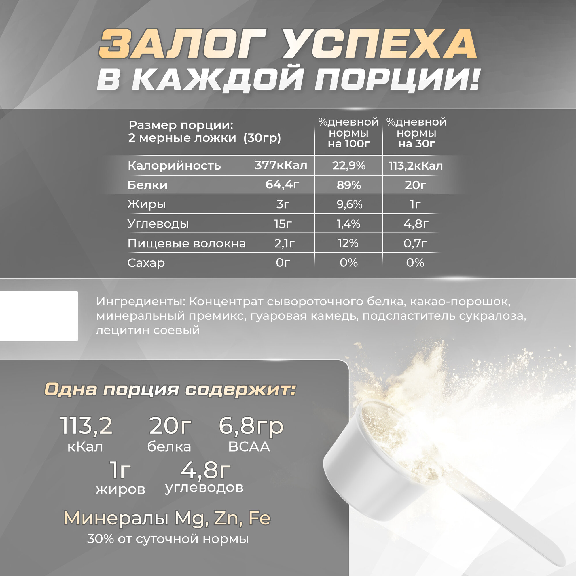 протеин шоколадный сывороточный для набора мышечной массы 900 гр 30 порций с минералами магний, цинк, селен, железо