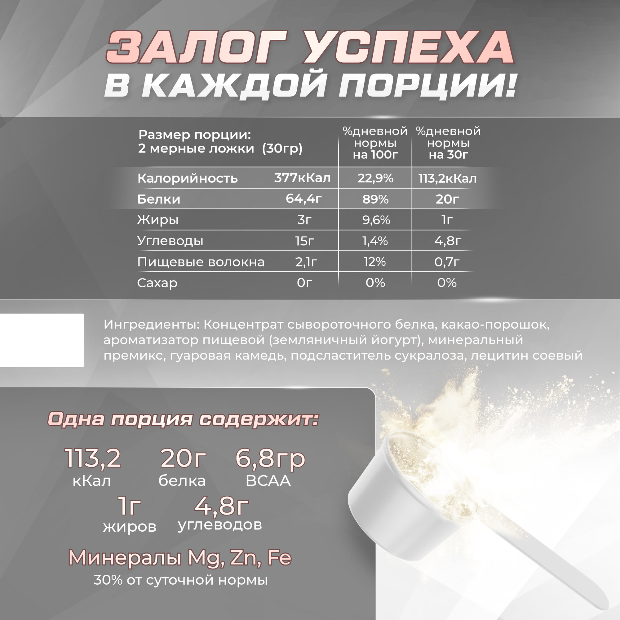 Протеин сывороточный со вкусом земляничного йогурта, 900 гр 30 порций