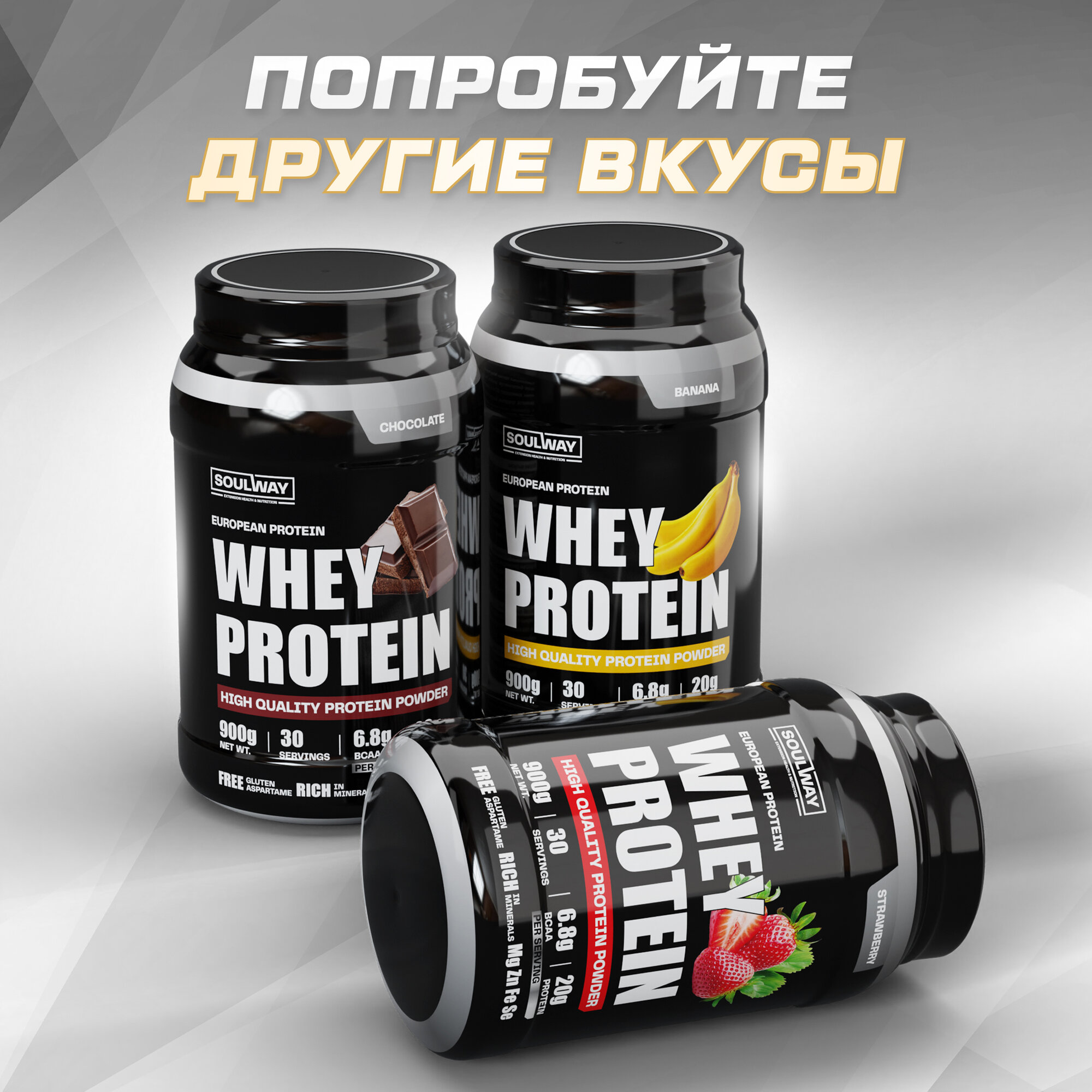 Протеин сывороточный Soul Way со вкусом земляничный йогурт / 900 гр 30 порций