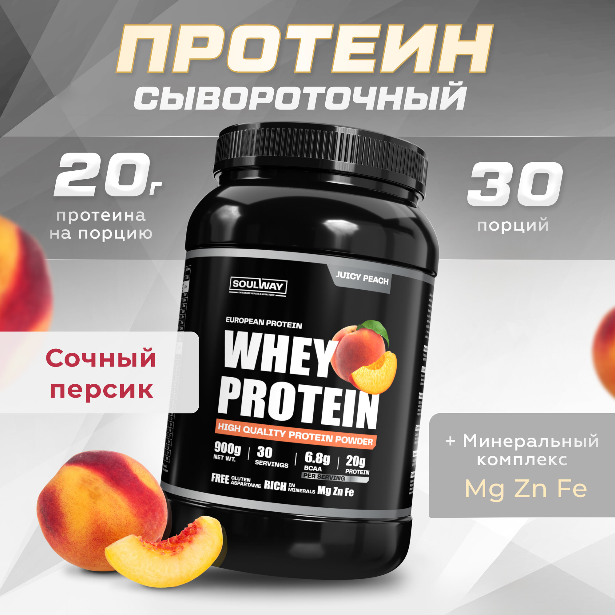 Купить Протеин сывороточный Soul Way со вкусом сочный персик / 900 гр 30 порций