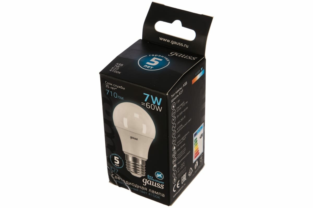 Лампа светодиодная gauss 102502207, E27, A60, 7 Вт, 4100 К
