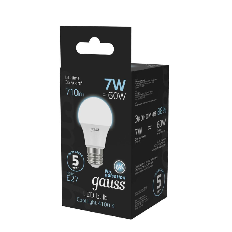Лампа светодиодная gauss 102502207, E27, A60, 7 Вт, 4100 К
