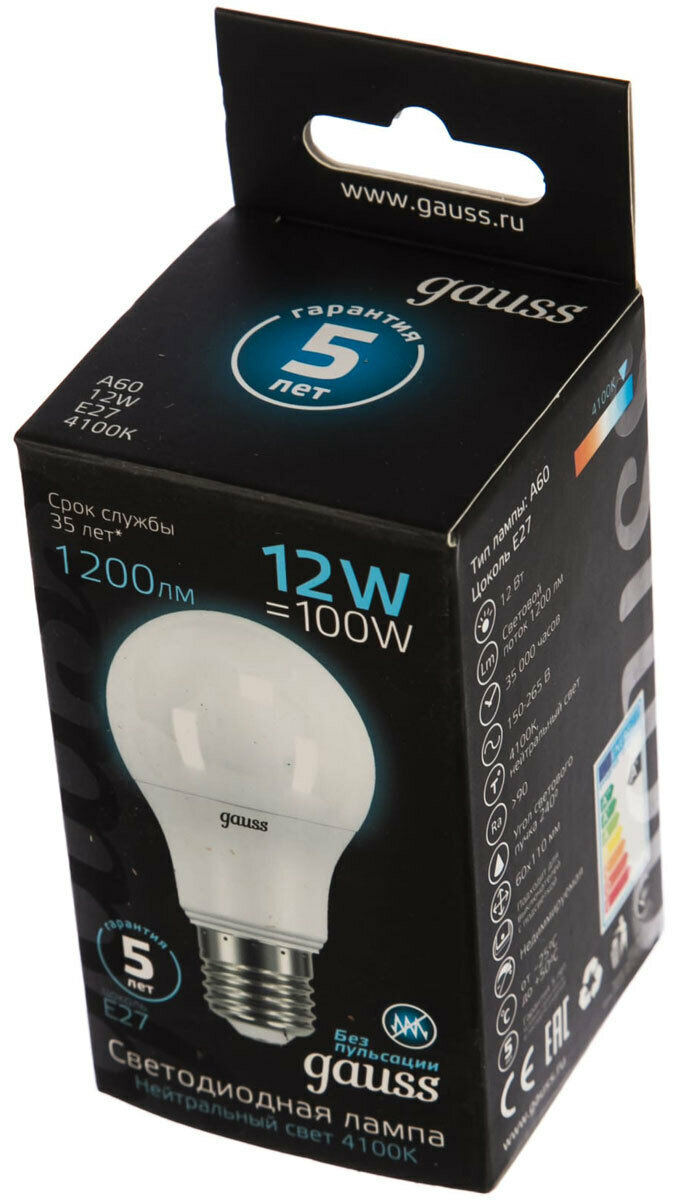 Gauss Лампа A60 12W 1200lm 4100K E27 LED