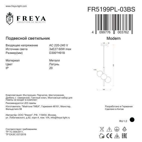 Freya Подвесной светильник Freya FR5249PL-03BG