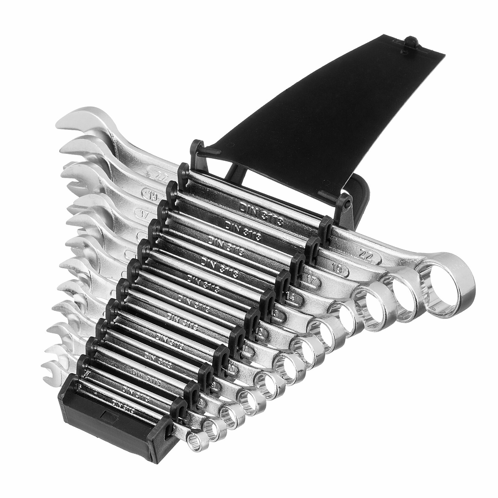 Набор ключей комбинированных 6-22 мм, 12 шт., СИБРТЕХ, CrV, хромированные, держатель с подвесом, 15452