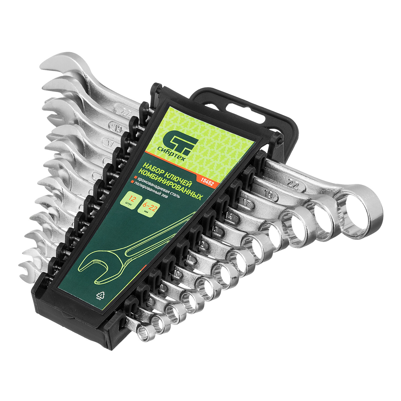 Набор ключей комбинированных, 6-22 мм, CrV, 12 шт Сибртех 15452